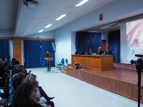 Στην κατάμεστη αίθουσα του Συνεδριακού Κέντρου του Δήμου Κατερίνης (Εκάβη), την Τετάρτη 26 Απριλίου 2017 μίλησε ο πανοσιολογιώτατος αρχιμανδρίτης π.Αντώνιος Στυλιανάκης με θέμα: “Το Άγιο Φως στον Τάφο του Χριστού και στη ζωή μας” με προβολή σπανίων ντοκιμαντέρ από το θαύμα του Αγίου Φωτός.
