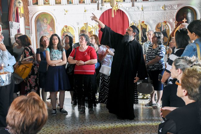 Πολύ κοντά στο Μοναστήρι του Αγ. Νεκταρίου βρίσκεται η Ι. Μονή της Αγ. Αικατερίνας την οποία επισκεφτήκαμε στην συνέχεια. Στο καθολικό της μονής αφού ψάλλαμε το απολυτίκιο της Αγίας, ο π. Σάββας μας μίλησε για τον θαυμαστό βίο της και το μαρτύριο της.
