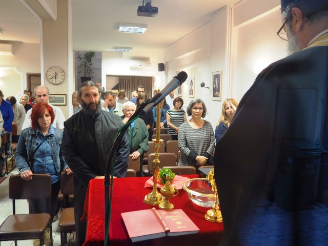 Την Πέμπτη 4 Οκτωβρίου το απόγευμα ο πρωτοπρεσβύτερος  του Ι. Ν. Θείας Αναλήψεως π. Μιχαήλ Κουρσιουμπάς, τέλεσε τον αγιασμό για τη νέα περίοδο λειτουργίας στην αίθουσα της Κυριακής.