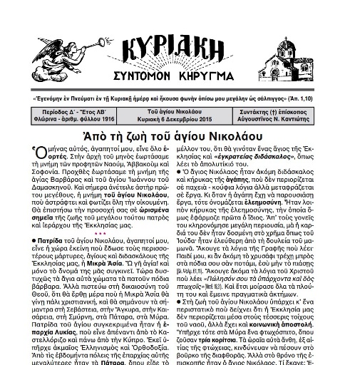 Τοῦ ἁγίου Νικολάου, Κυριακὴ 6 Δεκεμβρίου, Συντάκτης (†) ἐπίσκοπος Αὐγουστῖνος Ν. Καντιώτης Published 3 Δεκεμβρίου 2015 | By Αβραάμ Σαλασίδης Ἀπὸ τὴ ζωὴ τοῦ ἁγίου Νικολάου όλο το κήρυγμα σε pdf Αφήστε μια απάντηση Ακύρωση απάντησηςΓια να σχολιάσετε πρέπει να συνδεθείτε.
