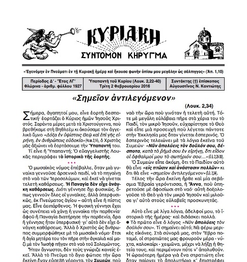 Ὑπαπαντὴ τοῦ Κυρίου. «Σημεῖον ἀντιλεγόμενον». Συντάκτης (†) ἐπίσκοπος Αὐγουστῖνος Ν. Καντιώτης Published 31 Ιανουαρίου 2016 | By Αβραάμ Σαλασίδης το κήρυγμα σε pdf Αφήστε μια απάντηση Ακύρωση απάντησηςΓια να σχολιάσετε πρέπει να συνδεθείτε.