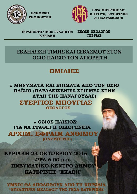 ΚΥΡΙΑΚΗ 23 ΟΚΤΩΒΡΙΟΥ 2016, 6:00 μ.μ. ΣΤΟ ΣΥΝΕΔΡΙΑΚΟ ΚΕΝΤΡΟ ΤΟΥ ΔΗΜΟΥ ΚΑΤΕΡΙΝΗΣ