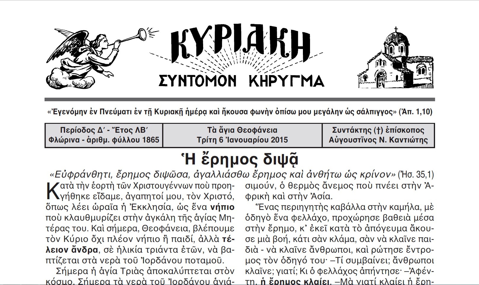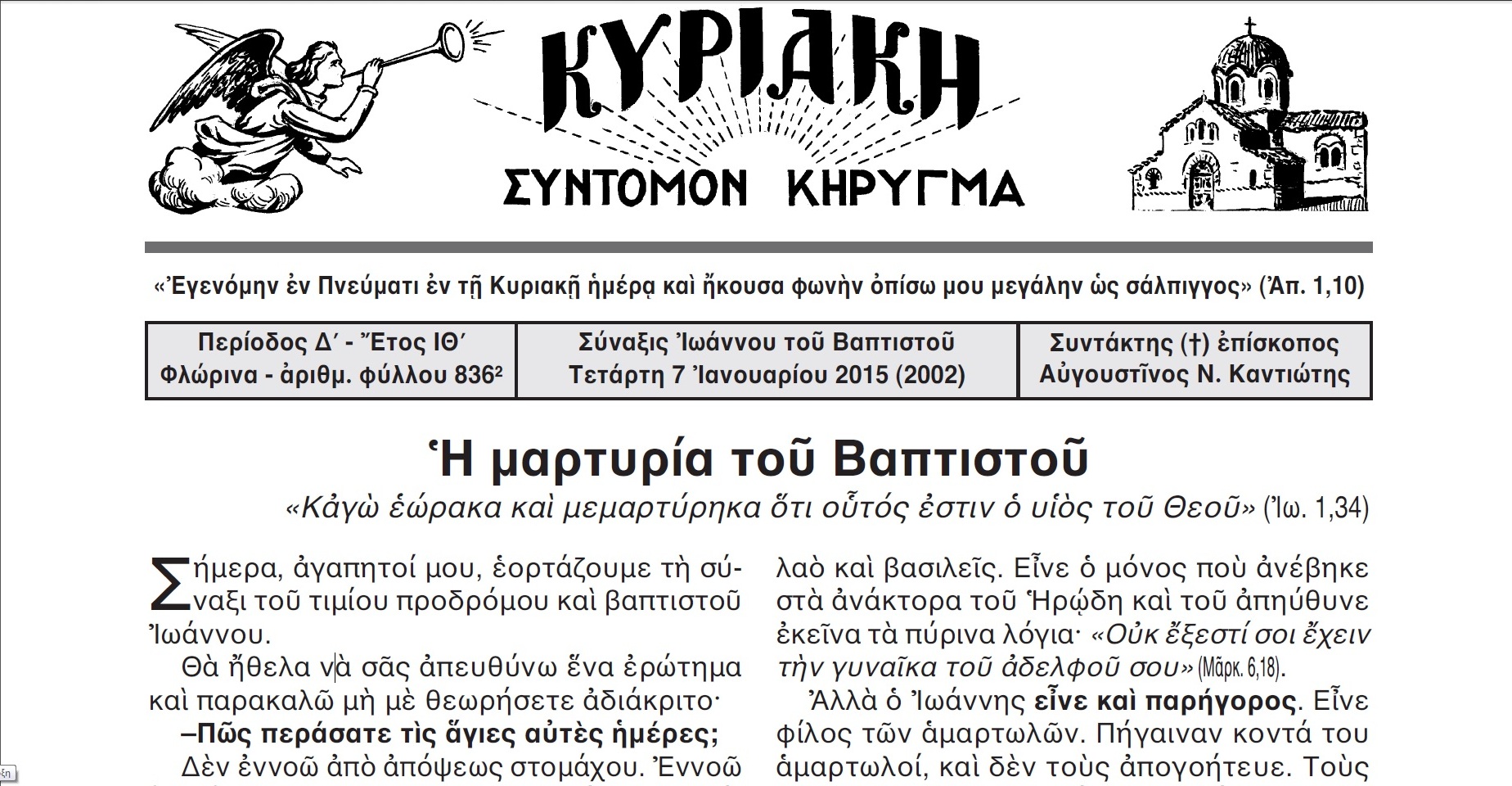 Το Σάββατο 10 Ιανουαρίου 2015, στις 7 μ.μ., στην κατάμεστη αίθουσα του Συνεδριακού Κέντρου του Δήμου Κατερίνης «Εκάβη», πραγματοποιήθηκε η προγραμματισμένη για το μήνα Ιανουάριο από τον Ιεραποστολικό Σύλλογο «Κυριακή» εκδήλωση με ομιλητή τον ιερομόναχο π. Σάββα Αγιορείτη και με θέμα: «Η αιτία της κατάθλιψης».