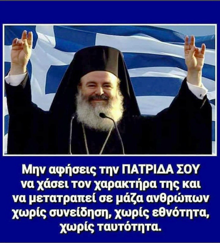 Κάποιοι ἁρμόδιοι, δικοί μας καί ξένοι πολιτικοί ἀξιωματοῦχοι, χωρίς αἰδώ, ἀποφασίζουν νά παραδώσουν τά Ἅγια τοῖς κυσί. Ξεσκίζουν μέ μιᾶς τήν Ἐθνική μας ταυτότητα, ἁρπάζουν ἀπό τό Ἐθνικό μας Ὑποθηκοφυλακεῖο τό ὄνομα τό ἱερό τῆς Μακεδονίας, καί τό παραδίδουν ὑβριστικῶς στό μωσαϊκό τοῦ γειτονικοῦ κρατιδίου.
