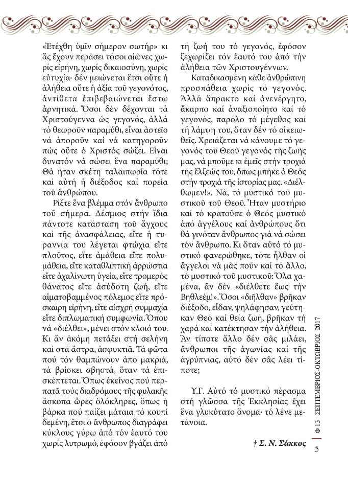 Της Αγίας Σκέπης, Σάββατο 28 Οκτωβρίου 2017, αριθμ.φύλλου 2046