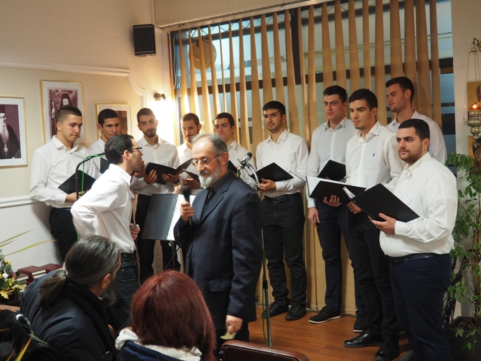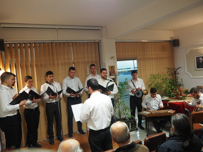 Πριν και μετά την ομιλία η βυζαντινή χορωδία ιεροψαλτών της αδελφότητας απέδωσε Χριστουγεννιάτικους ύμνους και τα κάλαντα Χριστουγέννων και Πρωτοχρονιάς.