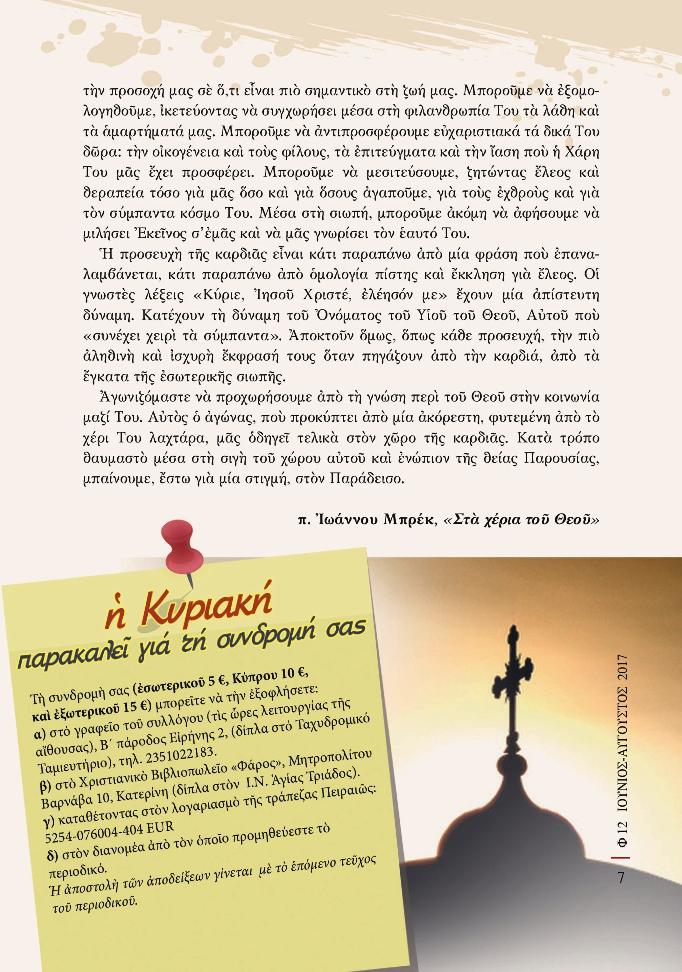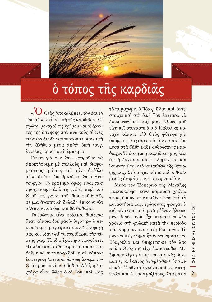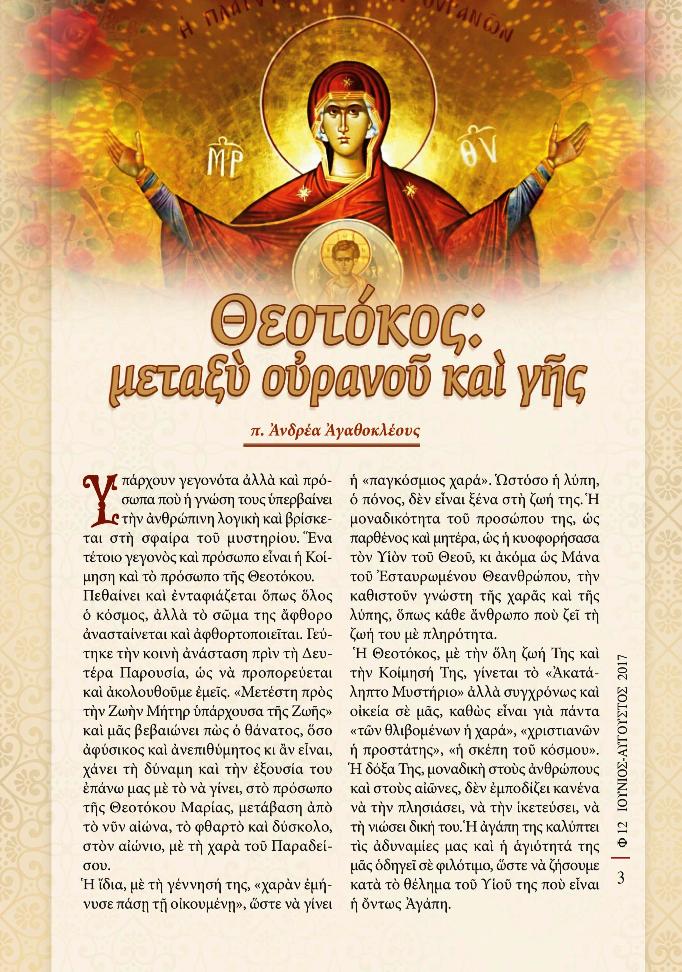 Τοῦ ἁγίου Παντελεήμονος, Πέμπτη 27 Ἰουλίου 2017 (2002), Μία ἀνθοδέσμη ἀπὸ τὴ ζωὴ τοῦ ἁγ. Παντελεήμονος, ἀριθμ. φύλλου 2018