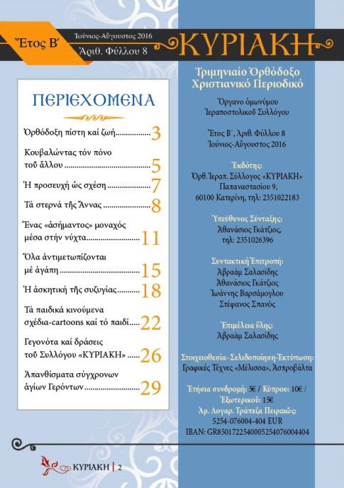 Την Κυριακή 12 Ιουνίου 2016 ο Ιεραποστολικός Σύλλογος Κυριακή πραγματοποίησε απογευματινό προσκύνημα στην ιερά Πατριαρχική και Σταυροπηγιακή Μονή του Αγίου Διονυσίου εν Ολύμπω (Στο Μετόχι και στον Παλαιό Αγ. Διονύσιο)