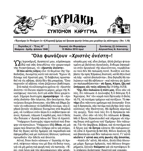 Ἡ ἀνάσταση τοῦ Κυρίου εἶναι, ὅπως τονίζει σαφέστατα ἡ ἁγία Γραφή, τό θεμέλιο τῆς χριστιανικῆς πίστεως. Ἄν ὁ Ἰησοῦς ἀπό τήν Ναζαρέτ ἀναστήθηκε ἀπό τούς νεκρούς, τότε εἶναι ὄντως ὁ ἀληθινός Θεός καί ἡ ἀπαρχή τῆς δικῆς μας ἀνάστασης. Ἄν ὅμως ἡ ἀνάστασή του εἶναι μῦθος καί θρῦλος, τότε ὅπως λέει ὁ ἀπόστολος Παῦλος εὐθέως, χωρίς περιστροφές, ἡ πίστη…
