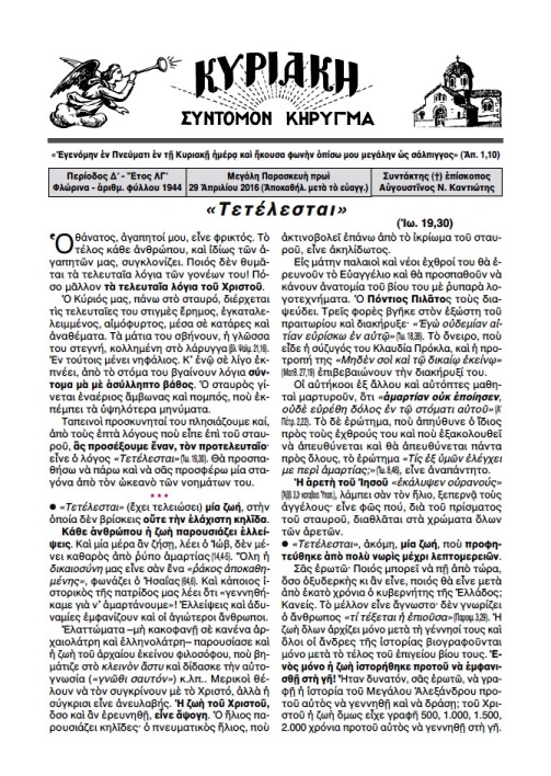 Τελικό ἀποτέλεσμα τῆς ἀπομάκρυνσης ἀπό τόν Θεό, τῆς ἁμαρτίας εἶναι τά πάθη καί ὁ θάνατος, τόσο ὁ ψυχικός ὅσο καί ὁ βιολογικός-σωματικός.