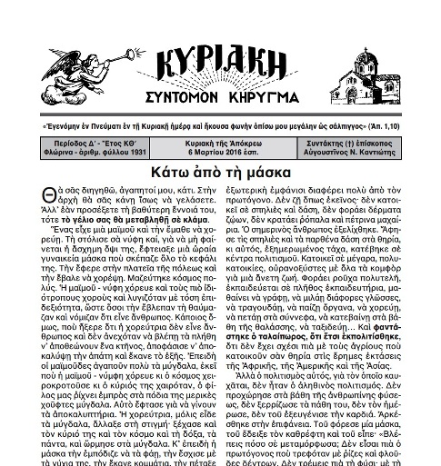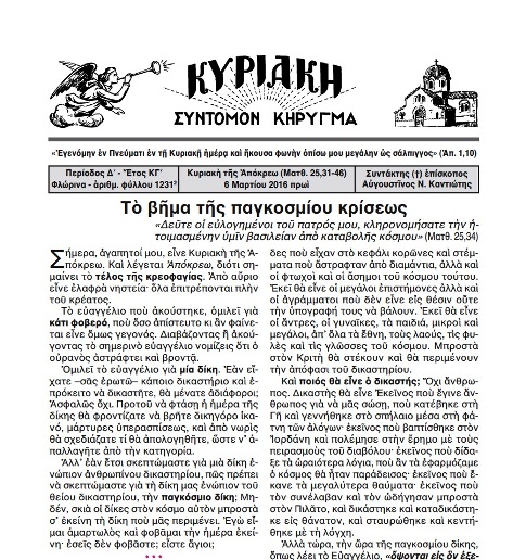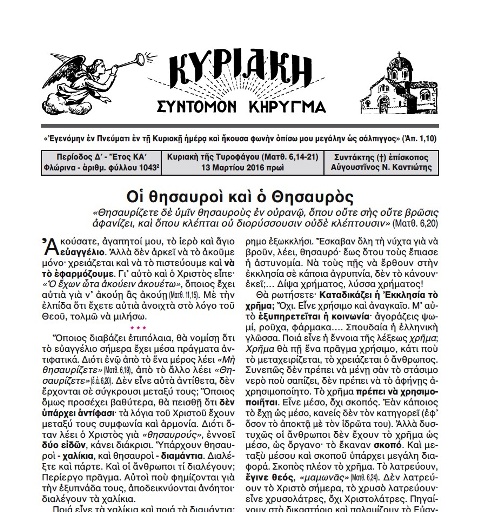 Γνωρίζετε ὅτι μερικὲς φορὲς ὁ Κύριος ὀργιζόταν, δύο φορὲς ἔδιωξε ἐμπόρους ἀπὸ τὸ ναὸ καὶ ἀναποδογύρισε τὰ τραπέζια τῶν ἀργυραμοιβῶν. Ἐπίσης γνωρίζετε πὼς μιὰ φορὰ ἔφτιαξε μαστίγιο ἀπὸ σκοινιὰ καὶ ἔδιωξε ἀπὸ τὸ ναὸ αὐτοὺς ποὺ πουλοῦσαν ἐκεῖ ζῶα. Φοβερὴ ἦταν μερικὲς φορὲς ἡ ὀργὴ τοῦ Υἱοῦ τοῦ Θεοῦ.