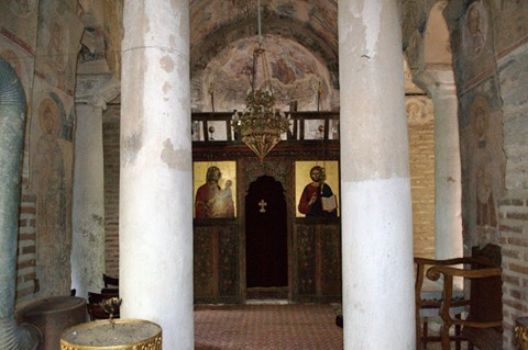 Ἡ τοιχοδομία τοῦ ναοῦ ἀποτελεῖται ἀπὸ ἀργολιθοδομὴ καὶ πλίνθους. Στὸ ναὸ τῆς Παναγίας ὑπάρχουν πολὺ λίγα στοιχεῖα κεραμοπλαστικοῦ διάκοσμου, αὐτὰ εἶναι ἡ ἰχθυοάκανθα (ψαροκόκκαλο) καὶ ἡ ὀδοντωτὴ ταινία.