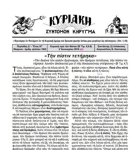 Ἀρχὴ τοῦ νέου ἔτους, Πέμπτη 1 Ἰανουαρίου 2015 (2004), ῾Ριζωμένοι στὴν πίστι, ἀριθμ. φύλλου 1031(2)