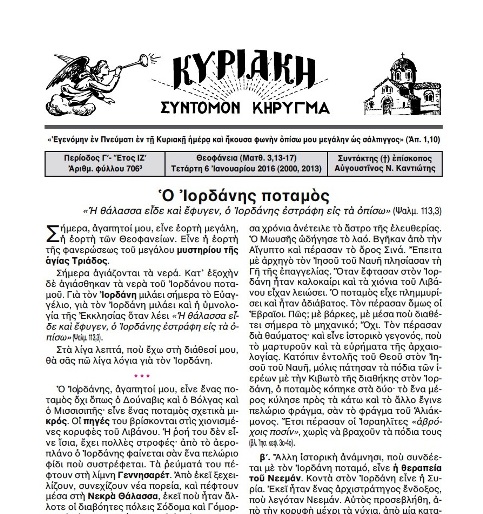 Τὰ ἅγια Θεοφάνεια, Τρίτη 6 Ἰανουαρίου 2015, Ἡ ἔρημος διψᾷ, ἀριθμ. φύλλου 1865