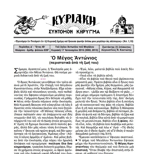 Τοῦ ἁγίου Ἀντωνίου τοῦ Μεγάλου, Σάββατο 17 Ἰανουαρίου 2015 (2004), Περὶ ὑπακοῆς, ἀριθμ. φύλλου 1035(2)