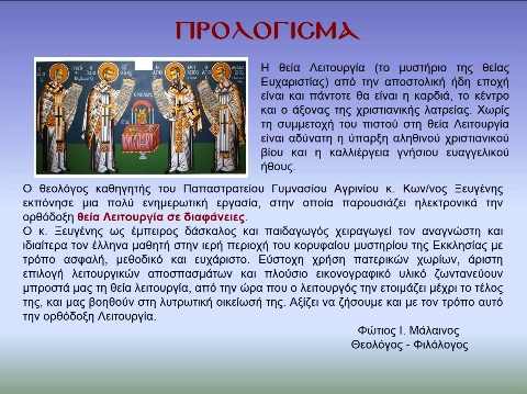 H ΘΕΙΑ ΛΕΙΤΟΥΡΓΙΑ σε 144 διαφάνειες. Πολύ χρήσιμο για ΚΑΘΗΓΗΤΕΣ Ιεροψάλτες,Κατηχητές και Εκκλησιαζομένους.